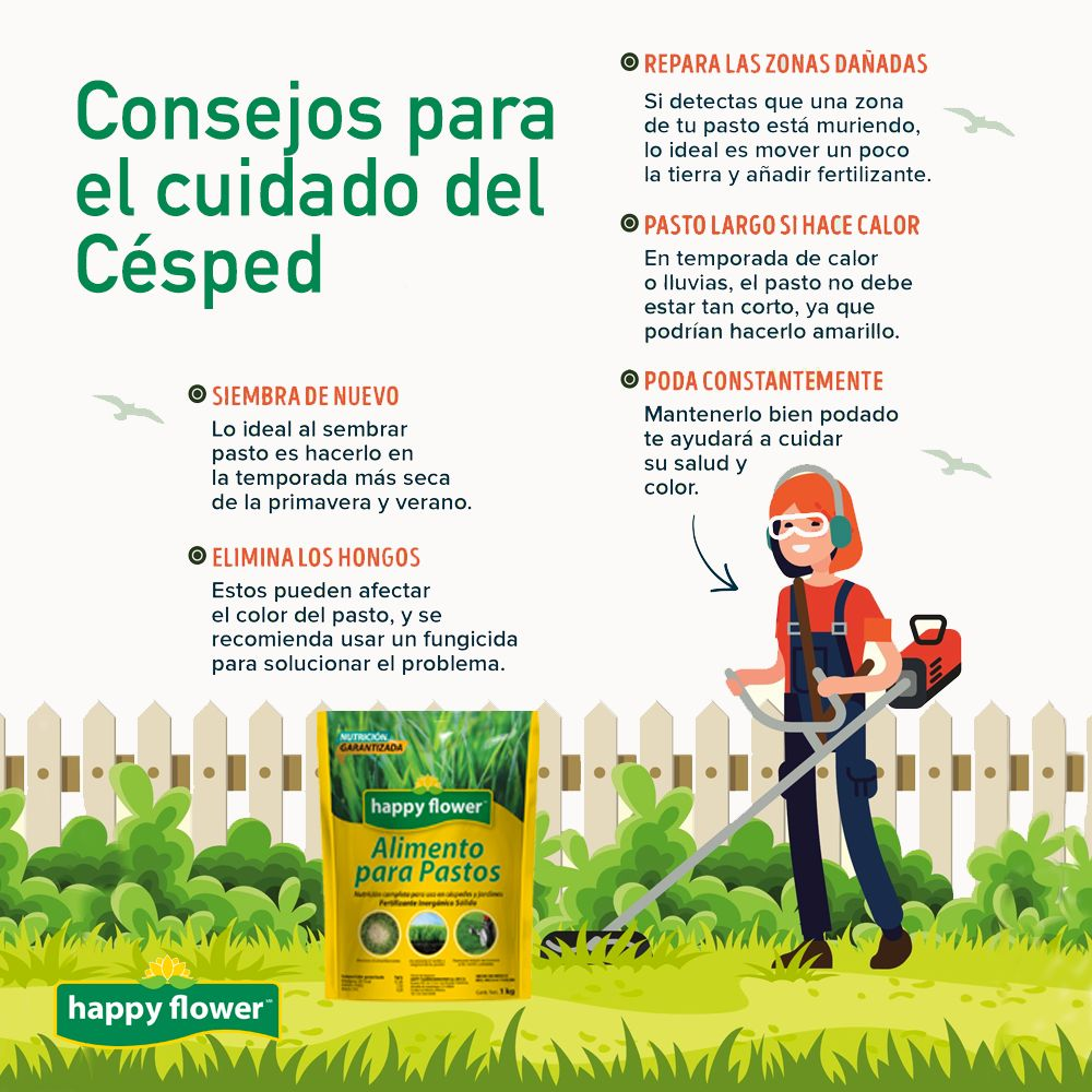 No cortes más de un tercio de la altura del pasto en cada poda.